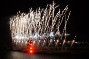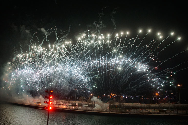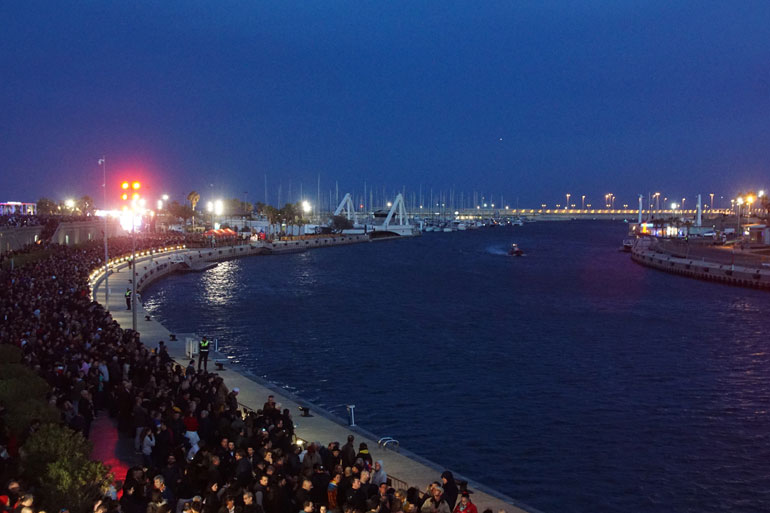 Cabe destacar que la mascletà ha sido 100 metros más ancha que el año pasado, pasando de 180 a unos 330 metros en paralelo a la dársena, lo que ha permitido que esta haya podido ser vista desde más ángulos, para el disfrute de toda la ciudad.