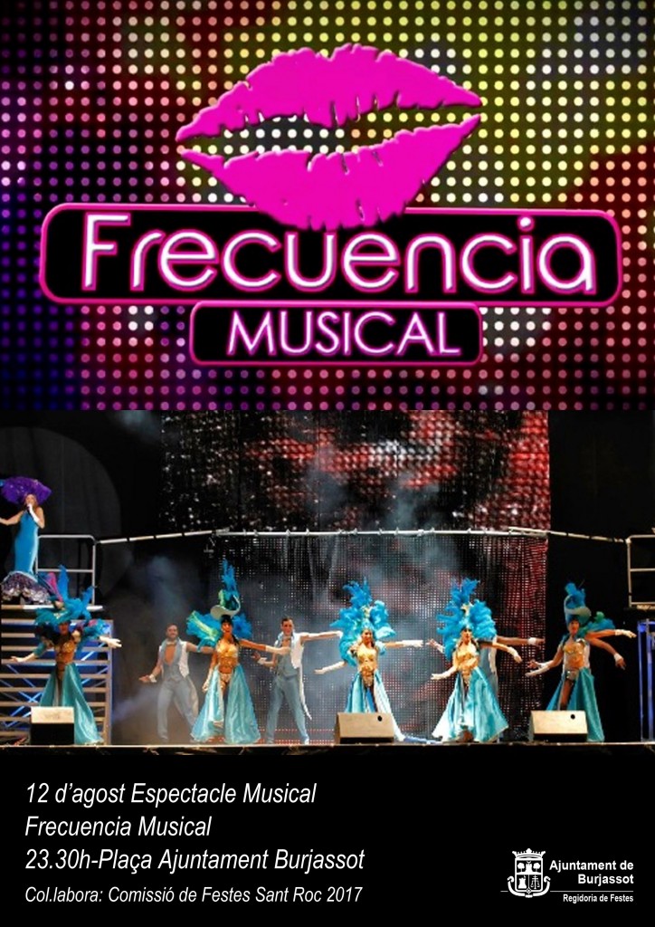El musical Frecuencia Musical será el encargo de poner el ritmo a la noche del 12 de agosto. Un espectáculo en que los ritmos más actuales sonarán en las voces de grandes cantantes. Será a las 23 horas en la Plaza del Ayuntamiento lugar en el que, por la tarde, habrá también reparto de horchata y fartons. El día finalizará con una macro discomóvil patrocinada, como en el caso del musical, por la Concejalía de Fiestas del Ayuntamiento de Burjassot.