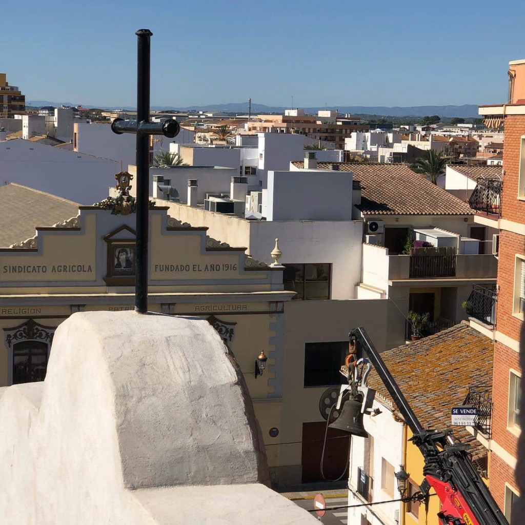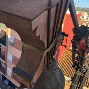 La parroquia de San Antonio Abad de Rafelbunyol está llevando a cabo los trabajos de restauración de tres de sus seis campanas, fundidas todas en el siglo XX, concretamente las de mayor peso, con 709, 496 y 343 kilos, respectivamente.