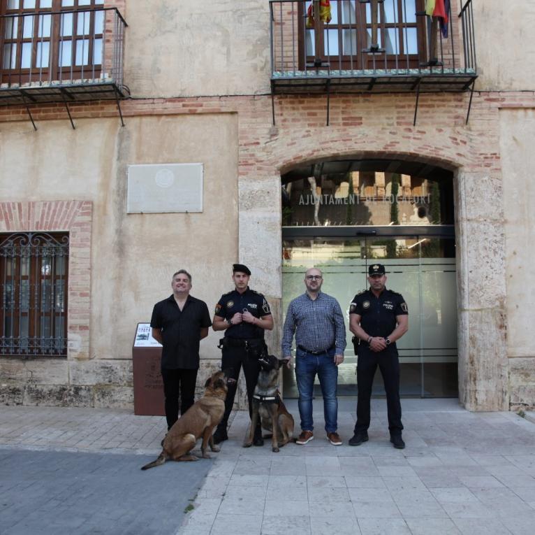 El alcalde y el concejal de Seguridad Ciudadana de Rocafort, Rafael Ferrando y Guillermo José, dieron la bienvenida en nombre del ayuntamiento a los dos perros que integrarán la Unidad Canina del cuerpo de Policía Local de Rocafort desde hoy mismo.