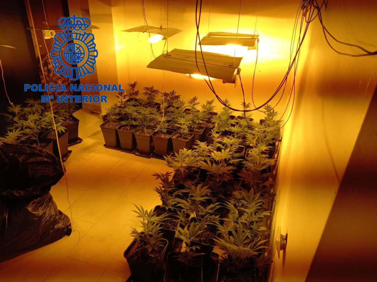 Los agentes han intervenido 145 plantas de marihuana con un peso total de más de 3.200 gramos, 24 gramos de cogollos de marihuana, 100 gramos de al parecer hachís, 1.2 gramos de al parecer cocaína, 4.425 euros, 12 plafones con sus correspondientes bombillas, 12 transformadores, 16 bombillas, una balanza de precisión y una defensa extensible.