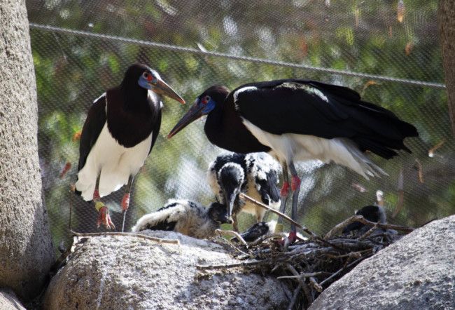 Como cada primavera las familias que habitan el parque crecen en número de integrantes con los nuevos nacimientos. La especie protagonista en estos días es la cigüeña de Abdim (Ciconia abdimii) que podemos ver en el aviario de Bioparc donde convive con otras especies como paloma de guinea, estornino, alcaraván de El Cabo, y también mamíferos como damanes roqueros y saltarrocas.