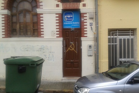 La sede del PP en Godella volvió a ser víctima este fin de semana de nuevos actos vandálicos sufridos en la sede que amaneció con numerosas pintadas en contra del Partido Popular de Godella. Las pintadas fueron borradas de inmediato por miembros y simpatizantes de esta formación.
