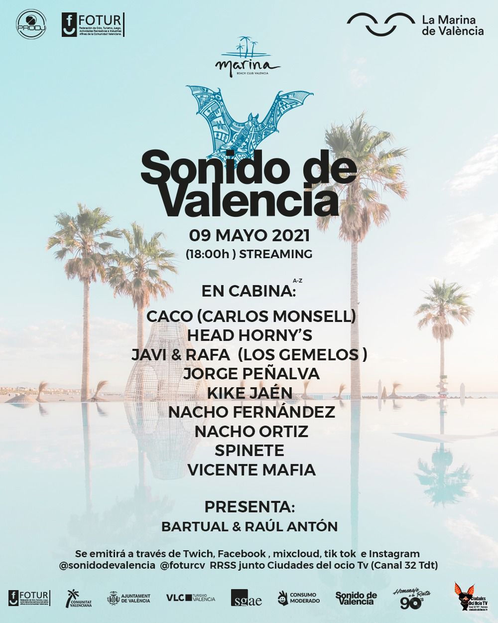 Tras el éxito de la primera edición, que vieron cerca de 400.000 personas, FOTUR, PRODJ CV y La Marina de València presentan en diferido y por streaming '¡Sonido de Valencia Segunda Parte!' el evento remember reinventado y adaptado a la nueva situación dibujada por la pandemia. Organizado por FOTUR y PRODJ CV con la colaboración de Turisme Comunitat Valenciana, SGAE y La Marina de València, esta segunda parte se grabó el pasado lunes en el exclusivo local Marina Beach Club para emitirlo en diferido el próximo domingo 9 de mayo.