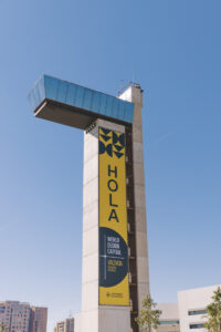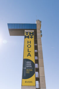 València Capital Mundial del Diseño 2022 ha desplegado una lona gigante en la Torre Miramar dando la bienvenida a locales y visitantes en la ciudad que ostenta el título de Capital Mundial del Diseño este 2022.