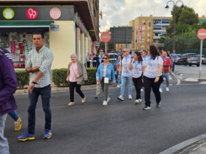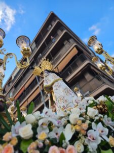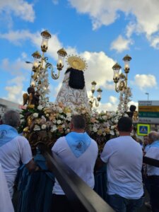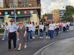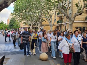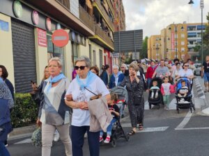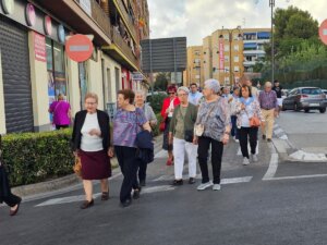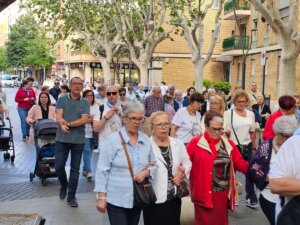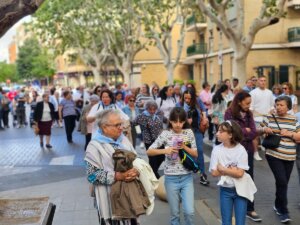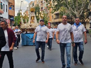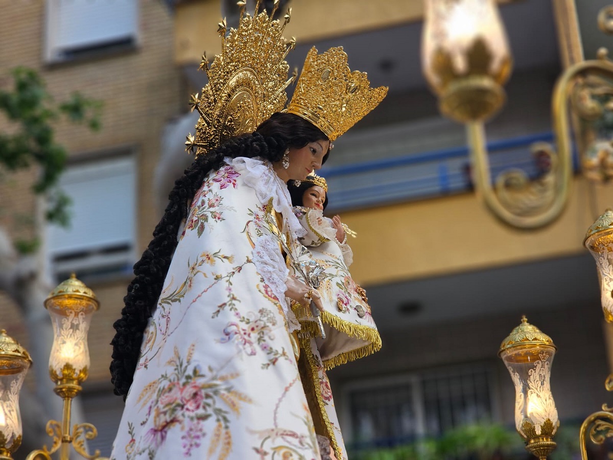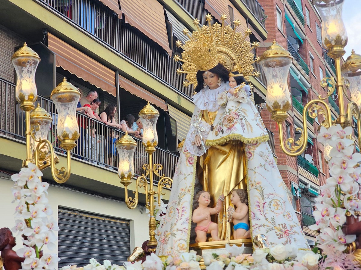 La Virgen fue recibida por comisiones de fiestas, falleras mayores y gran cantidad de personal que la acompañaron en su visita y, a su llegada, la fallera mayor de la comisión impuso a la imagen la insignia de la falla.