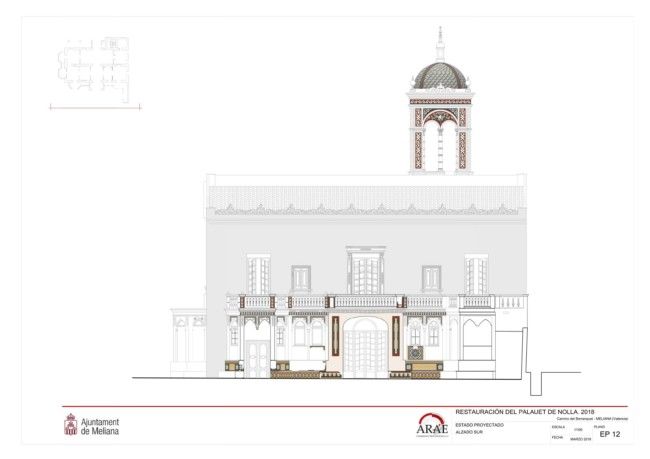 L’Ajuntament de Meliana té programada una important actuació en el projecte de rehabilitació del Palauet de Nolla, edifici emblemàtic del municipi recollit com a Bé de Rellevància Local en el Pla d’Actuació Territorial de l’Horta. Este edifici, que forma conjunt arquitectònic i patrimonial amb l’antiga fàbrica de mosaics Nolla, és de titularitat municipal i té un valor molt important pel que fa al patrimoni industrial vinculat a este paviment ceràmic que va tindre una projecció internacional a final del s. XIX i la primera meitat del s. XX.