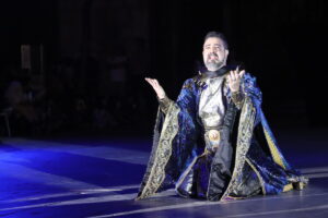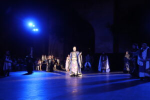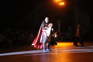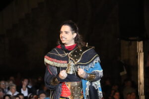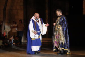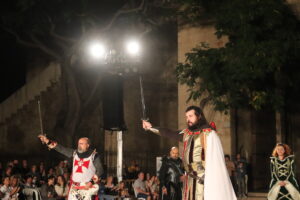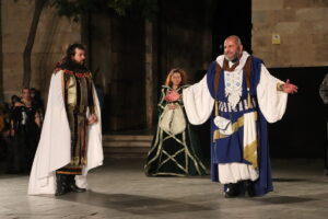 El autor de esta maravillosa puesta en escena, Javier Santes, ha ido incorporando parte de los textos en verso de Ferran Gil, de la poesía bien documentada de Donís Martí y de la adaptación teatral que Juan Alfonso Gil Albors hizo del 'Llibre dels Fets' sobre el relato de la conquista de Valencia por el rey En Jaume.