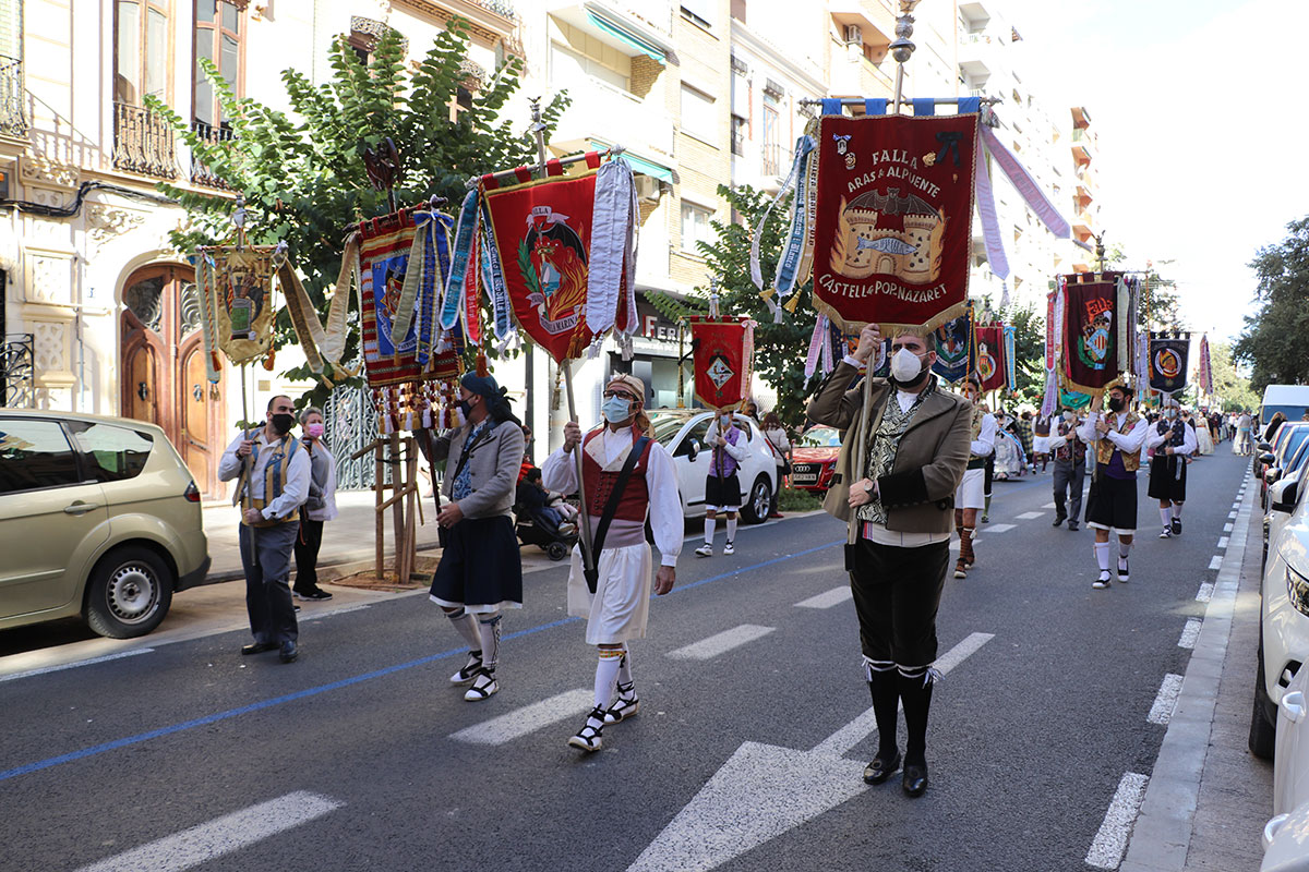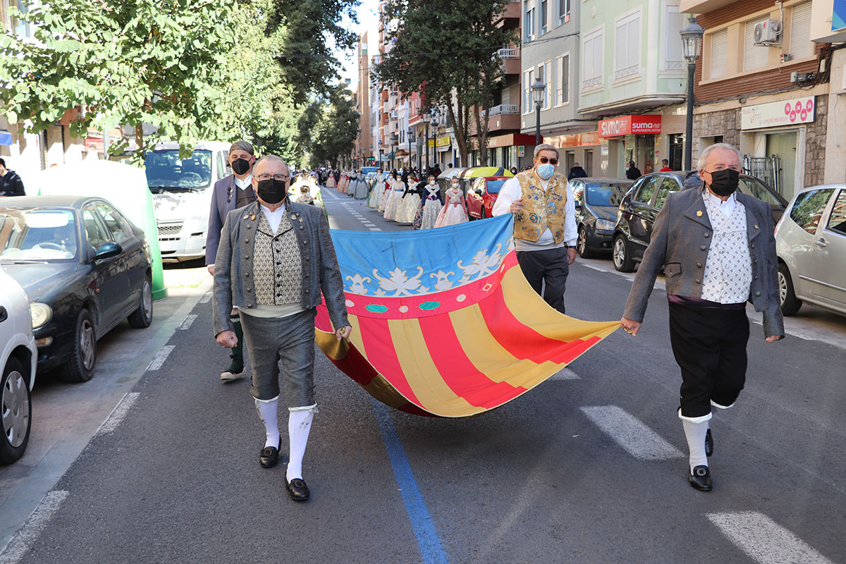 Las Senyeras y estandartes de las Comisiones y los máximos representantes de las Fallas de la Agrupación han abierto camino a la Senyera, portada por los Delegados de Sector pertenecientes a esta Agrupación. Toda la comitiva ha sido acompañada por un día magnífico y un sol radiante que ha contribuido a amortiguar las bajas temperaturas propias de esta época del año.