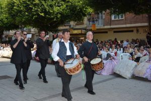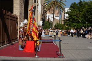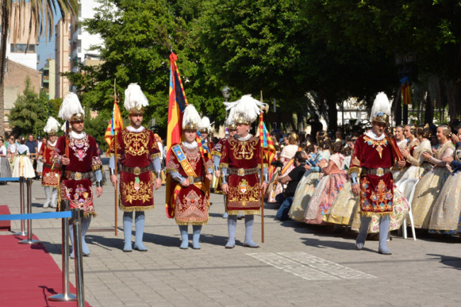 Con el sonido de tabal i dolçaina, tuvo lugar la Dansà en honor de la Real Senyera, interpretada por los Grupos de Bailes Regionales de las Fallas Serrería-Sants Just i Pastor, Blasco Ibáñez-Mestre Ripoll, Arquitecte Alfaro-Francesc Cubells, J.J. Domine-Port, Progrés-Teatre de la Marina, Aras de Alpuente-Castell de Pop, Isaac Peral-Méndez Núñez y Barraca-Travessera Esglesia del Rosari.