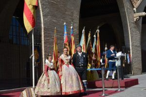 Ante las Atarazanas, las encargadas de izar la Senyera fueron las Falleras Mayores de Valencia, Consuelo y Carla, siendo éste el primer acto donde disfrutamos de su presencia en el ejercicio fallero. Rafael Solaz Albert, investigador, bibliófilo y documentalista, Presidente de la Societat Bibliogràfica Valenciana Jerònima Galés y Senador del Museo de la Imprenta, autor del proyecto y dirección del “Museo del Silencio”, visitas por el Cementerio General de Valencia, miembro de l'Associació d'Estudis Fallers "ADEF", colaborador en exposiciones y muestras centradas en el ámbito fallero, fue el encargado de realizar la glosa del acto.