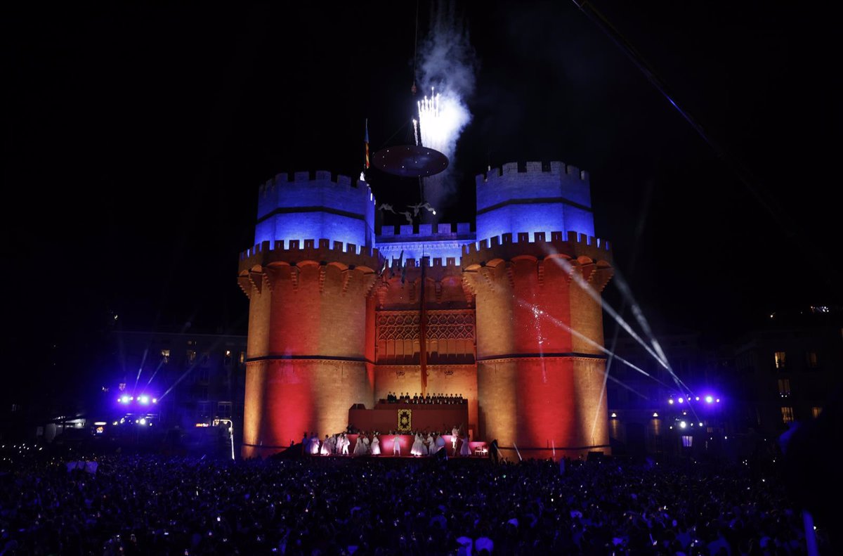 El espectáculo ha recreado un viaje en el tiempo a través de la historia de las Fallas, con homenajes al 80 aniversario de la Ofrenda y al 140 aniversario del primer llibret de falla de Bernat i Baldoví. Las acróbatas aéreas del conjunto Sylphes Aerial Ballet han sobrevolado al público con coreografías especiales para la ocasión.