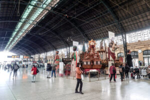 En concreto, se han movido a la Estación del Norte las carrozas de la Mare de Déu dels Desamparats, la Santíssima Trinitat, la Fe y el Sant Calze; las imágenes de Sant Cristòfol y la barca de Sant Nicolau, y ocho figuras más, entre gigantes, nanos y cavallets. Todas estas piezas forman parte de la muestra “Las rocas de València en la Estación del Norte”, cuya finalidad es visibilizar el origen y la importancia de la festa grossa en la ciudad. El traslado ha sido autorizado y supervisado por la Dirección General de Patrimonio de la Conselleria de Cultura, y se ha hecho entre el lunes y el martes, en horario nocturno.