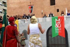 Els parlaments, a continuació, tingueren els seus protagonistes en Encarna Puig, de la comparsa Muladins, la seua alferessa, Rebeca González, de les Omeyes, i el capità cristià, Vicente Francés, de la filà Cavallers Hospitalaris, amb la seua alferessa, Sonia Guzmán, de Na Violant.