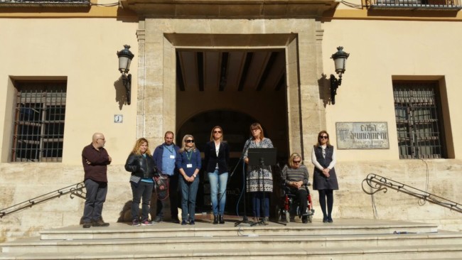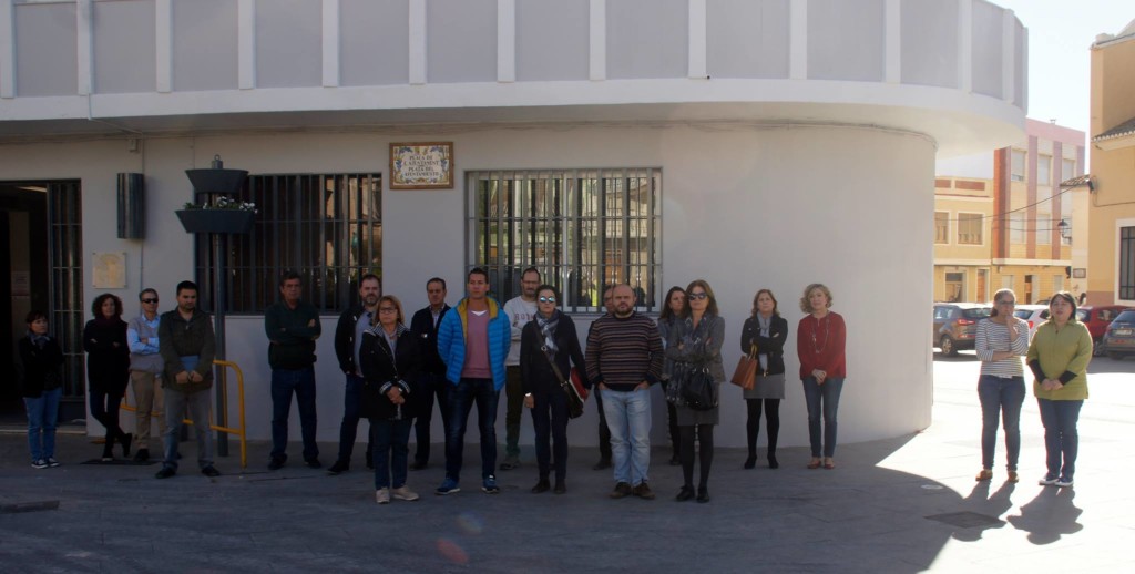 La comarca de l'Horta se paralizó al mediodía para condenar el asesinato machista de una mujer de 28 años en Elda (Alicante) cuando recogía a su hijo del colegio y que falleció ayer después de permanecer cerca de 24 horas en coma.