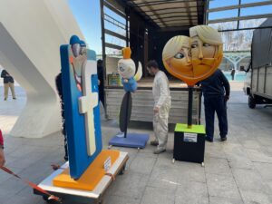 En dos jornadas, artistas falleros y representantes de las casi 400 fallas que militan en la Junta Central Fallera han ido entregando, desde las 10 horas de este lunes, en el Museu de les Ciències de la Ciutat de les Arts i les Ciències sus ninots escogidos para optar a su indulto del fuego en la Exposición del Ninot 2023.