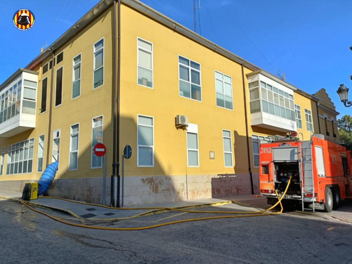 El fuego se ha originado en la instalación eléctrica del sótano de la casa consistorial. Un aviso alertaba a las 9:45 horas del incendio y el Consorcio ha movilizado a dotaciones de los parques de Paterna y Burjassot, con un sargento de Paterna al frente.