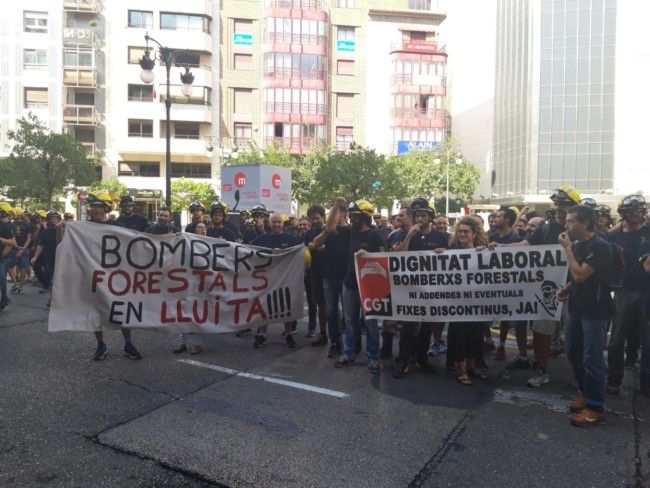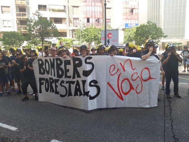 Los bomberos reclaman un aumento de salario de acuerdo a las nuevas funciones que han tenido que asumir, así como la segunda actividad para los mayores de 65 años. Las consignas de la concentración reflejadas en varias pancartas, no dejaba lugar a dudas: "Bomberos forestales en huelga", "Dignidad laboral" o "Bomberos forestales, Contratados por la Administración. Segunda Actividad. No más compañeros en la calle. Aumento Salarial. Mileuristas jugándonos la vida. Tercer turno. Trabajo sin temporalidad".