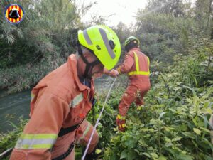 Los bomberos han tenido que rescatar este domingo por la tarde a tres personas y un perro que habían sido arrastradas por la corriente del río Túria en Manises, según han informado fuentes del Consorcio Provincial de Bomberos de València.