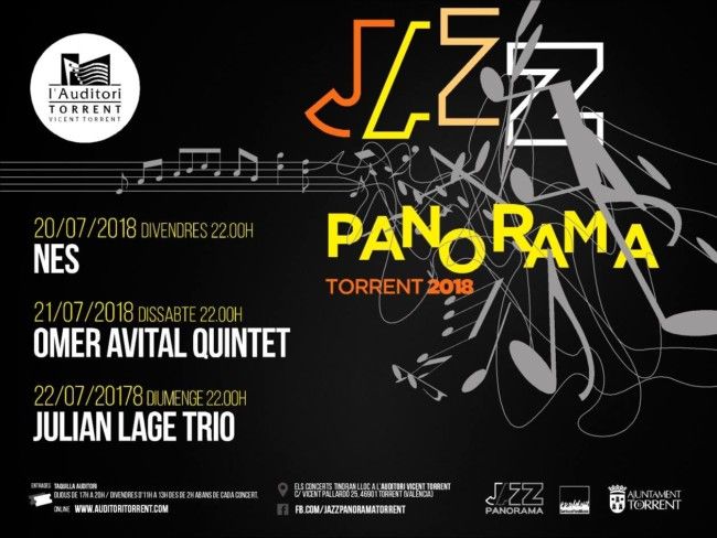 El Auditori de Torrent presenta el cartel de su Jazz Panorama 2018 con una buena muestra del mejor jazz nacional e internacional. Del 20 al 22 de julio, se dan cita en su escenario grandes artistas del género, en un festival que siempre se ha caracterizado por la calidad de sus propuestas y por su variado repertorio de estilos y procedencias. Las actuaciones son todas a las 22 horas.