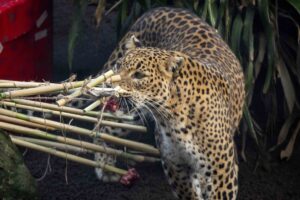 Estas actividades se enmarcan en los protocolos de “enriquecimiento ambiental” muy positivas para el bienestar de los animales. El estímulo de los diferentes sentidos con olores, colores, formas, sabores y un “ponérselo difícil” hace que los animales tengan que esmerarse para obtener la preciada y exquisita recompensa.