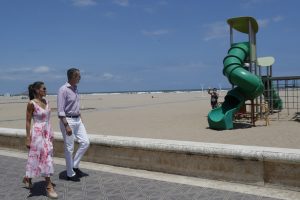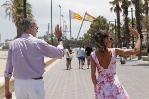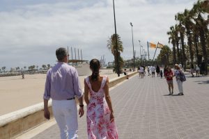 Una vez en Valencia, los Reyes han visitado la playa y han comido en uno de los restaurantes de la paseo de Neptuno. En su paseo, los Reyes han saludado a numerosos vecinos que se han visto sorprendidos por la visita de Felipe y Letizia.
