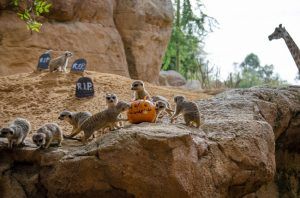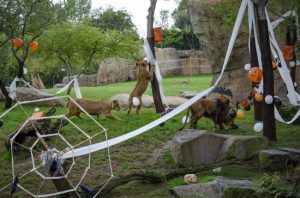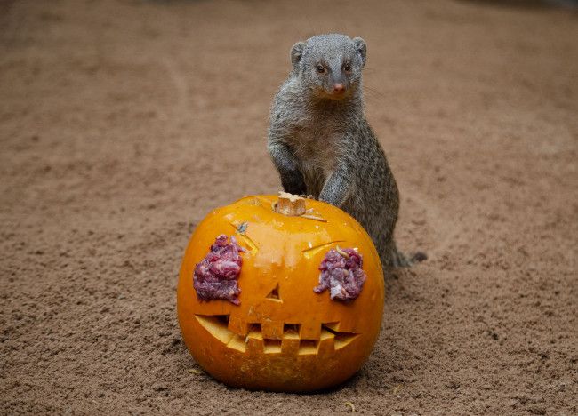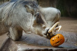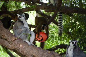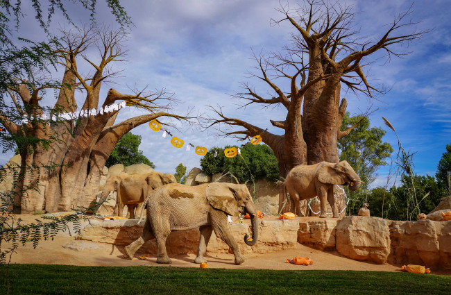 Los pequeños carnívoros como suricatas y mangostas rayadas extraían la carne picada mientras tomaban los escurridizos gusanos que salían de los ojos y boca decorados en las calabazas; para los grandes depredadores como leones y hienas el olor de la sangrienta carne roja resultaba un gran estímulo para encontrar rápidamente su manjar; los primates como lémures, gorilas o driles cogían con destreza sus “golosinas” en forma de muesli y frutas; los facóqueros, “famosos” por ser Pumba en “El Rey León”, rebuscaban la fruta, maíz y pienso; por último, los “gigantes” de Bioparc como hipopótamos, sorprendían engullendo de un solo bocado las grandes calabazas y los elefantes se divertían “destrozando” con sus trompas las enormes guirnaldas que colgaban de los baobabs mientras degustaban su comida favorita.