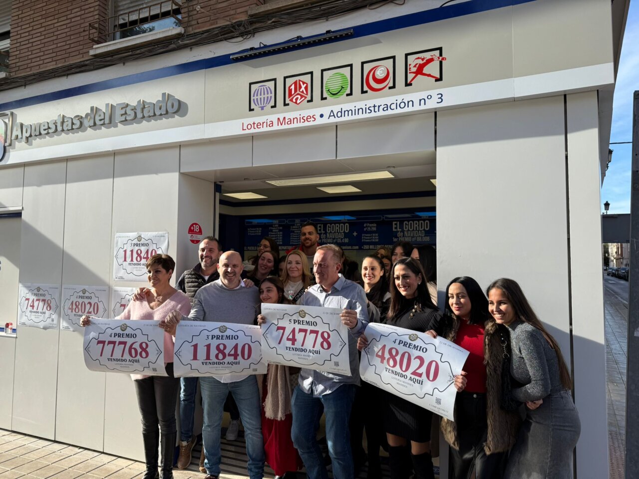 Lotería Manises, la administración ubicada en la avenida dels Tramvies 12 de Manises, ha vuelto a repartir muchos premios del sorteo de la Lotería de Navidad tras han repartido algo más de una serie del tercer premio, otras de los dos cuartos premios, el 77.768 y el 48.020, y de uno de los quintos, el 74.778.