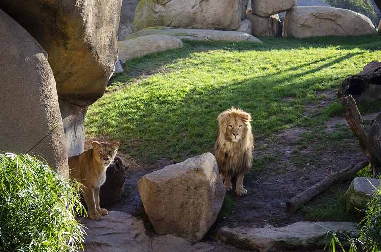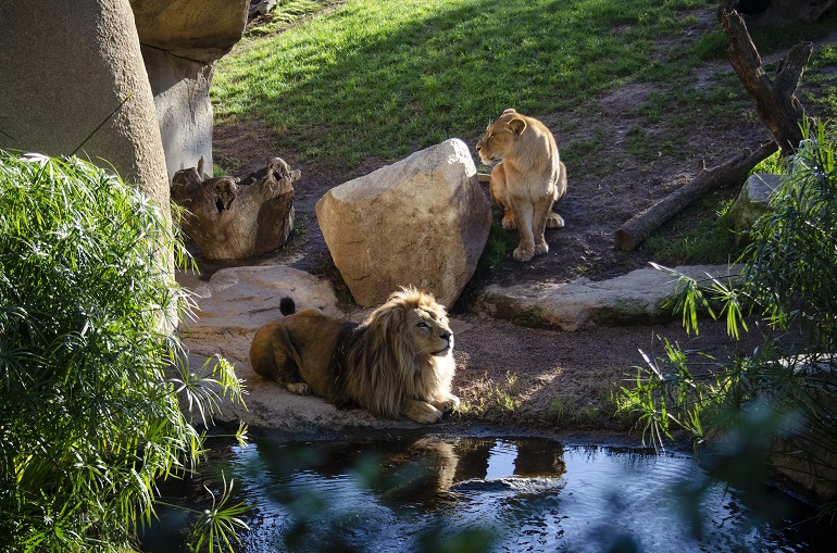 La majestuosa estampa de los leones en Bioparc Valencia es de las imágenes más impactantes y que dejan un recuerdo imborrable en muchísimas personas. Ahora ya se puede contemplar todas las mañanas a Lubango y a Shanga, una joven pareja de la subespecie león de Angola (Panthera leo bleyenberghi), paradigma de la legendaria belleza de los grandes felinos y ejemplo también de la amenaza que acecha a la naturaleza salvaje. Una vez más, desde el parque valenciano se hace una llamada sobre la delicada situación de los leones que han pasado a formar parte de la tristemente famosa Lista Roja de la IUCN (Unión Internacional para la Conservación de la Naturaleza) como vulnerables a la extinción. Las poblaciones de esta emblemática especie se encuentran en retroceso, debido a la acción humana por la destrucción del hábitat y a la caza furtiva.
