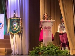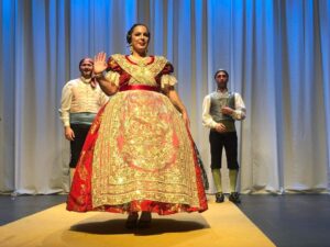 Llegado este punto, tuvo lugar el apoteosis enlazado con la segunda parte del espectáculo, dando paso al momento culminante que fue el maravilloso discurso de la mantenedora Nerea López Maestre, que tuvo palabras amables y llenas de amor a las falleras mayores, a la Junta local y a la ciudad.