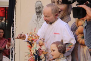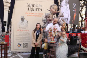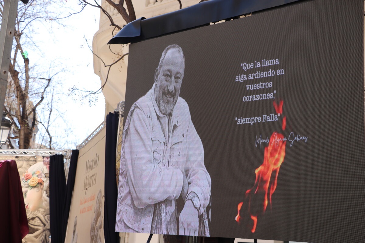 Para recordar que la llama siga ardiendo en vuestros corazones, Manolo Algarra 'ha vuelto' a su cita anual con la falla Almirante Cadarso-Conde Altea. Pero esta vez en forma de homenaje póstumo y en forma de ninot que la comisión fallera plantará en su monumento grande.