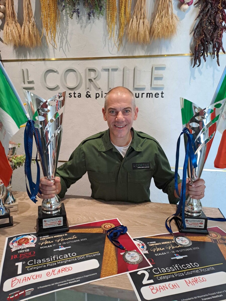Dedicación, pasión y amor por la pizza. Marco Bianchi, propietario del grupo Il Cortile, ha conseguido podio en dos categorías, posicionándose en un lugar privilegiado de entre todos los participantes internacionales que se han presentado al 21º Campeonato Mundial de Pizza Picante organizado por la MPI (Movimento Pizzerie Italiane) que se ha celebrado en Scalea (Calabria) los días 17,18 y 19 de octubre.