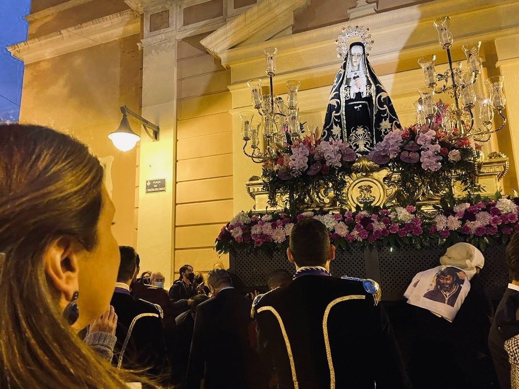 La corporació celebrará la misa de imposición de insignias y medallas a las 19 horas en la Parroquia de Nuestra Señora de los Ángeles del Cabanyal para, al terminar, iniciar la procesión con su imagen titular, la Dolorosa, a hombros de 25 costaleros y abriendo el cortejo 4 caballos de la citada unidad de caballería