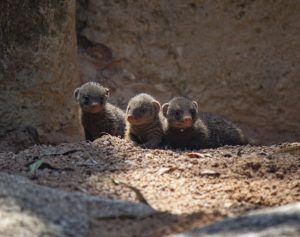 El verano sigue siendo un buen momento para los nacimientos, especialmente de las especies que habitan en las zonas de la sabana que recrea fielmente Bioparc Valencia. Y en uno de los espacios más interesantes al mostrar los típicos Kopjes que utilizan los leones como atalayas, nos encontramos un grupo de 12 mangostas rayadas (Mungos mungo), 6 adultas y 6 crías. Las pequeñas, con sus juegos e imitando continuamente los quehaceres propios de la especie, son un gran atractivo para los visitantes que pueden apreciar así el valor de la conservación de la biodiversidad. Son animales diurnos, carnívoros y muy sociales que viven en grupos matriarcales, cuyas hembras sincronizan los partos que pueden ser de 2 a 6 crías. Marcan cada día su territorio compartiendo todos los miembros el mismo olor y usan llamadas monosilábicas que contienen estructuras similares a las vocales y consonantes que utilizamos los humanos.