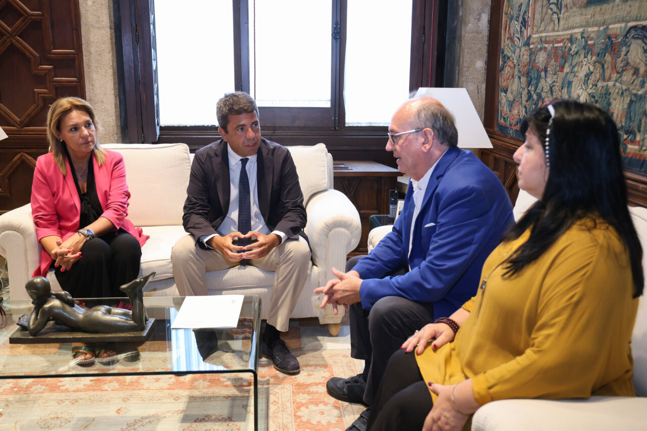 El president de la Generalitat, Carlos Mazón, ha mantenido una reunión con representantes de la asociación SOS Desaparecidos, encabezada por su presidente, Joaquín Amills.