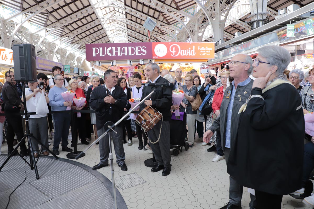 El acto de homenaje a la Virgen ha comenzado, tras el llamamiento con tabalet y dolçaina, con la bienvenida por la gerente de este recinto, Cristina Oliete, y la presentación del párroco, D. Gonzalo Albero Alabort y del vicario Aquilino Martínez Gallego, de la parroquia de Los Santos Juanes. El acto ha contado con la intervención del grupo de Albaes -cantadas por Mª Se y Manolo, con Marcial Pierres a la dolçaina y Jonás Pierre con el tabalet- y ha concluido con la tradicional ofrenda floral a la Virgen de los vendedores del Mercado Central.