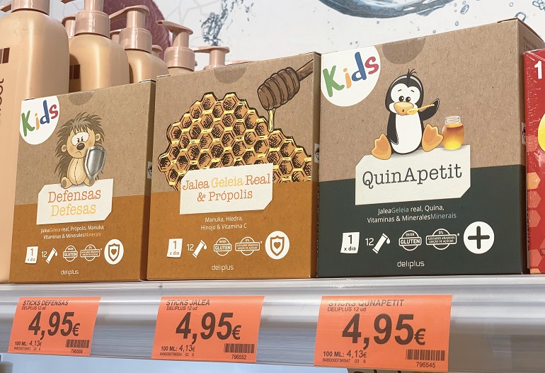 Mercadona, compañía de supermercados físicos y de venta online, ha renovado su surtido de complementos alimenticios de jalea real fresca con su nueva formulación en productos para reforzar el sistema inmunitario en adultos y en niños, como la Jalea Real & Própolis y Defensas; e incorpora como novedad el estimulante de apetito infantil QuinApetit.