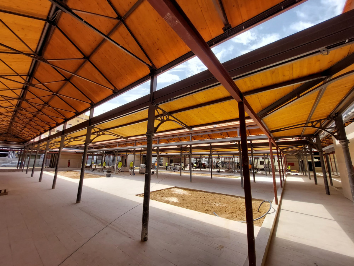 Los trabajos finales consistirán en terminar de poner el suelo, la ventilación, la iluminación (que será en forma de lámparas de estilo industrial) y la instalación de las grandes vidrieras que actuarán de pared e incidirán en el carácter abierto del mercado al barrio.