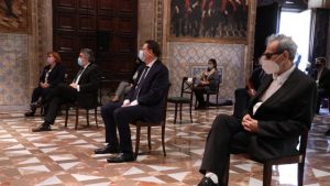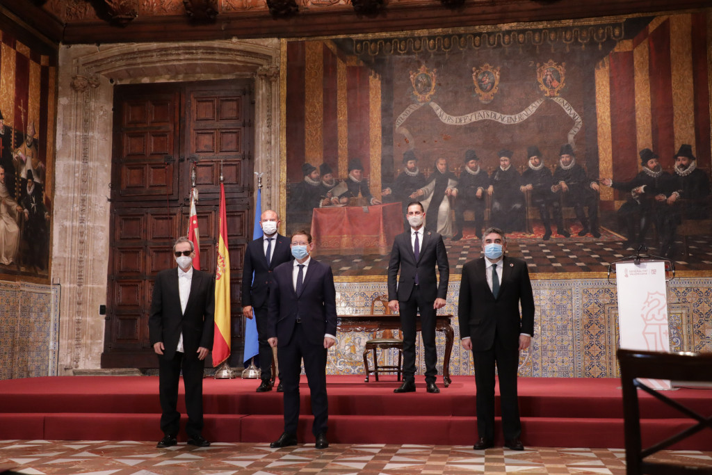 El president de la Generalitat, Ximo Puig, ha firmado este jueves en el Palau el protocolo de colaboración para impulsar la Fundación Miquel Navarro junto con el ministro de Cultura, José Manuel Rodríguez Uribes; el presidente de la Diputación de Valencia, Toni Gaspar; el alcalde de Mislata, Carlos Fernández Bielsa, y el propio artista. Al acto ha asistido también el conseller de Educación, Cultura y Deporte, Vicent Marzà.