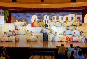 La parte final fue, sin duda, la más emotiva, en la que una a una fueron subiendo al escenario todas las falleras mayores de Mislata. Arriba eran recibidas por el presidente y la secretaria de la Agrupación, José Antonio García y Paloma Selles respectivamente, para pasar detrás del escenario a ocupar su puesto en un decorado presidido por una espectacular Luna llena sobre el mar.