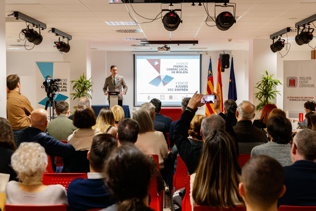 La tercera edición de los Premios al Comercio Local y la segunda de las ayudas Xec-Emprén de Mislata ya tienen ganadores. El centro sociocultural La Fábrica acogió ayer por la mañana la ceremonia de entrega de los galardones, en un Espai Crea abarrotado de comerciantes locales.