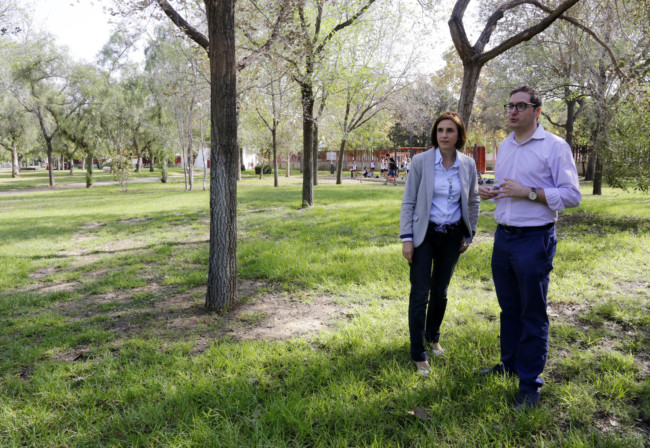 La concejala de Medio Ambiente y portavoz del gobierno municipal, Mª Luisa Martínez Mora, ha visitado esta mañana el parque de La Canaleta, acompañada por el gerente de Nemasa, Fernando Díaz, para supervisar el proyecto de plantación de nuevas especies y comprobar el renovado estado que luce ahora este pulmón verde de la ciudad.
