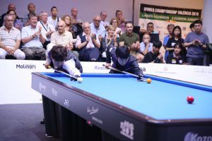 Myung y Ko eran los finalistas y en el duelo decisivo, el campeón no estuvo tan brillante como en otros partidos, pero una gran serie de nueve hizo que los aplausos volvieran al Salón Noble y una jugada más tarde alzaba los brazos como tricampeón mundial.