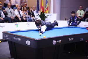 El podio lo completaron el colombiano Cristian Montoya y el tercer coreano, Hwa Woo-Cho. Los partidos de semifinales tuvieron diferente epílogo. En el primero, el más tarde campeón venció a Montoya (35-15 en 19 entradas) en un partido de una sola dirección, ya que el dominio del coreano fue de principio a fin.