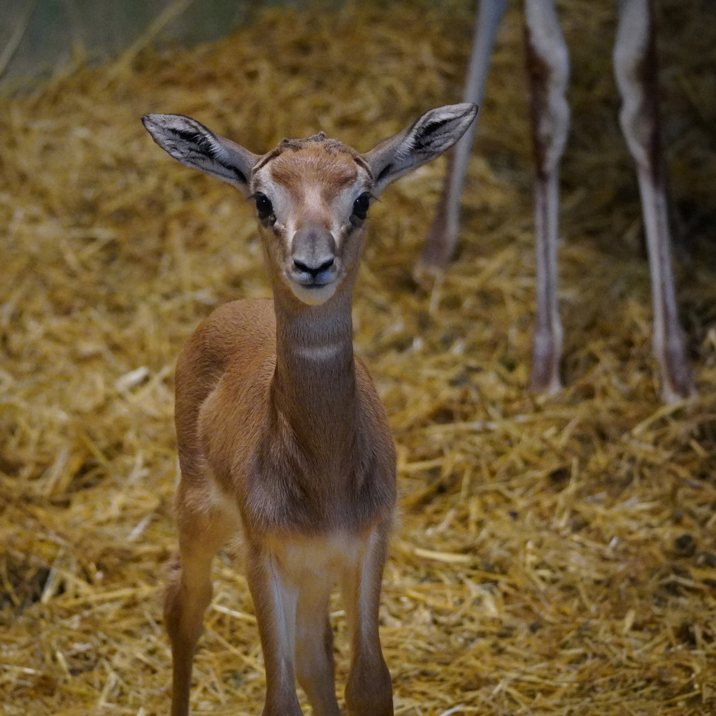 Aunque durante unos días madre y cría permanecen en los recintos interiores, en breve está previsto que se unan al resto y podremos contemplar al rebaño de ocho ejemplares en un recinto multiespecie de la sabana que comparten con otros antílopes, los addax (Addax nasomaculatus), la grulla coronada cuelligrís (Balearica regulorum) y la tortuga de espolones (Centrochelys sulcata), que estos meses se encuentra en hibernación.