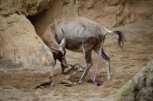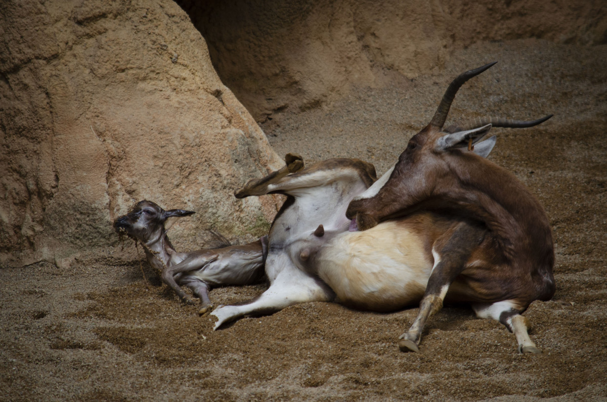 Este miércoles por la mañana en la visita a Bioparc se ha podido contemplar el instante más maravilloso de la naturaleza salvaje. La llegada de una nueva vida tenía lugar a la vista de las personas que recorrían el espacio que recrea la sabana. Una sorpresa y una gran emoción al ser testigos del nacimiento de un blesbok (Damaliscus pygargus phillipsi). Como en un documental “en directo”, sobre las 11:30h de la mañana, una de las hembras del rebaño comenzaba a dar muestras de ponerse de parto. Este animal y otra de las hembras se encontraban en una zona reservada del recinto, ya que el equipo técnico de Bioparc Valencia estaba pendiente de la evolución del embarazo y esperaban el nacimiento. Estos cuidados especiales tienen como objetivo garantizar el máximo bienestar de los animales en un momento tan delicado.
