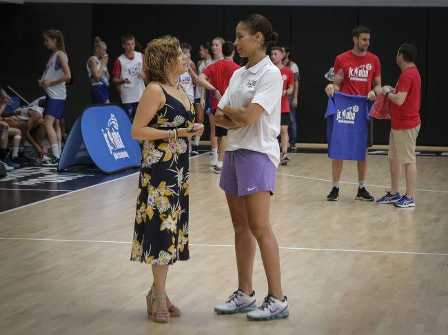 La concejala ha recorrido las instalaciones deportivas al tiempo que ha agradecido «a una entidad como la NBA que haya apostado por nuestra ciudad para traer a sus jóvenes que van a jugar el Mundial en Orlando la próxima semana, y cómo no al València Basket, por su trabajo y sus instalaciones. Es todo un lujo y un honor para la ciudad y el Ayuntamiento de València». Tras charlar con los jóvenes, que estaban entrenando, ha querido destacar que «les he deseado suerte y les he pedido que disfruten de la ciudad», para terminar señalando que acciones de este tipo son «un buen ejemplo de cómo las instituciones y el Ayuntamiento tenemos que aliarnos».