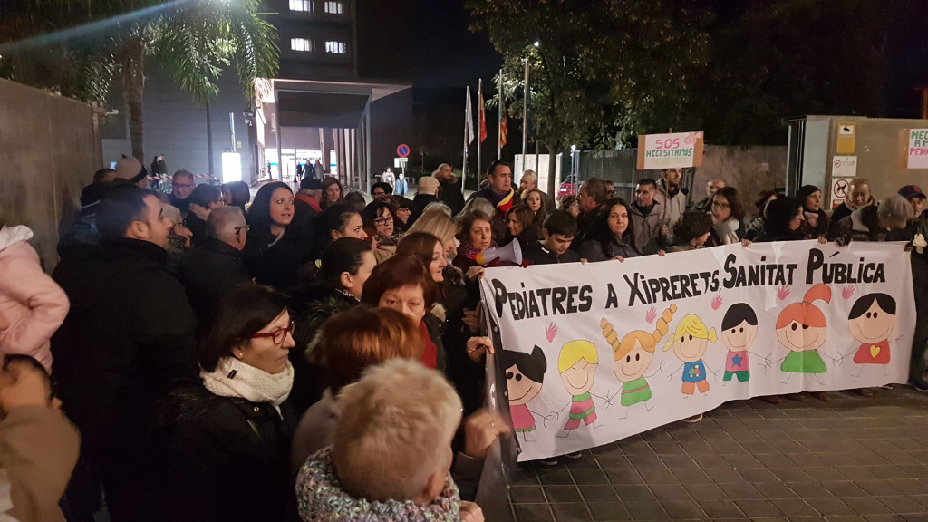 Hoy ha tenido lugar en Manises una nueva concentración en señal de protesta por la retirada del servicio de pediatría del consultorio de Xiprerets. Con la entrada de este nuevo año, asociaciones, AMPAS y colectivos, con el apoyo del Ayuntamiento, continúan y continuarán manifestándose para exigir la restitución del servicio.