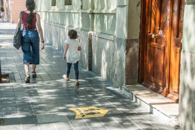Las nueve rutas en Ciutat Vella también incluyen la señalización vertical en forma de lápiz y los marcadores pintados en las aceras. Cabe añadir, además, que al pasar la mayoría de las rutas por una zona residencial que, por su condición, no dispone de pasos de peatones pintados sobre calzada, se han añadido marcadores sobre el pavimento en su lugar para facilitar los cruces de los escolares.
