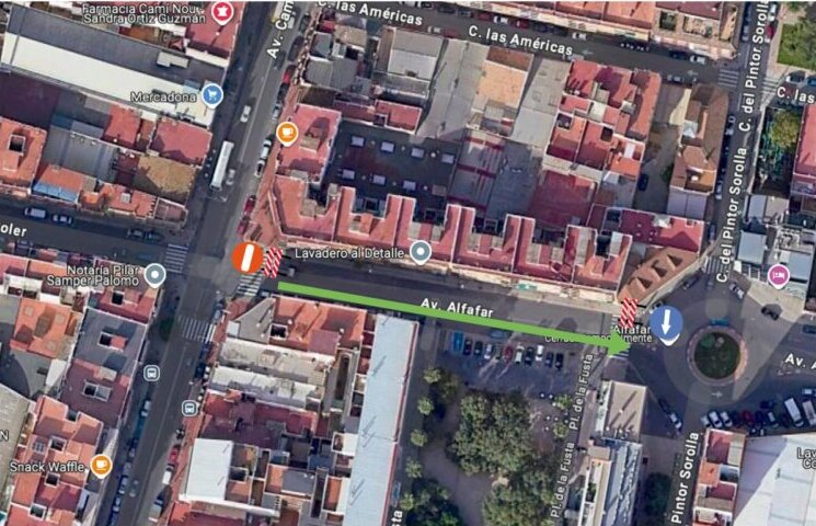 Durante los trabajos, el tráfico será desviado por la calle Pintor Sorolla y la avenida Orba antes de reincorporarse a la avenida Camí Nou. El corte de acceso comenzará a las 7:30 horas del jueves y se mantendrá durante cuatro jornadas, aunque al final de cada jornada laboral la vía se abrirá nuevamente al tráfico para garantizar la circulación de vehículos.